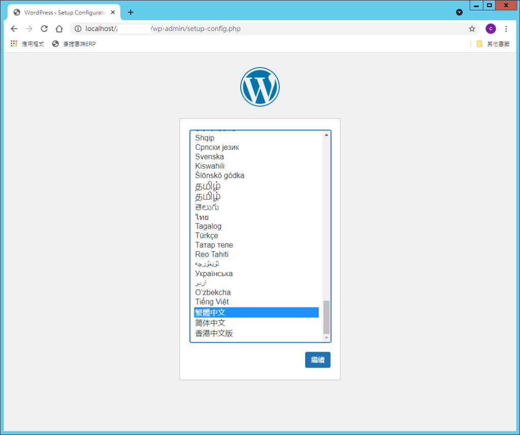 第七步 這邊我們選擇繁體中文,當然您可以選擇您慣用的語系。