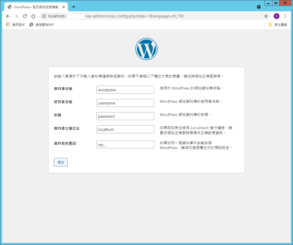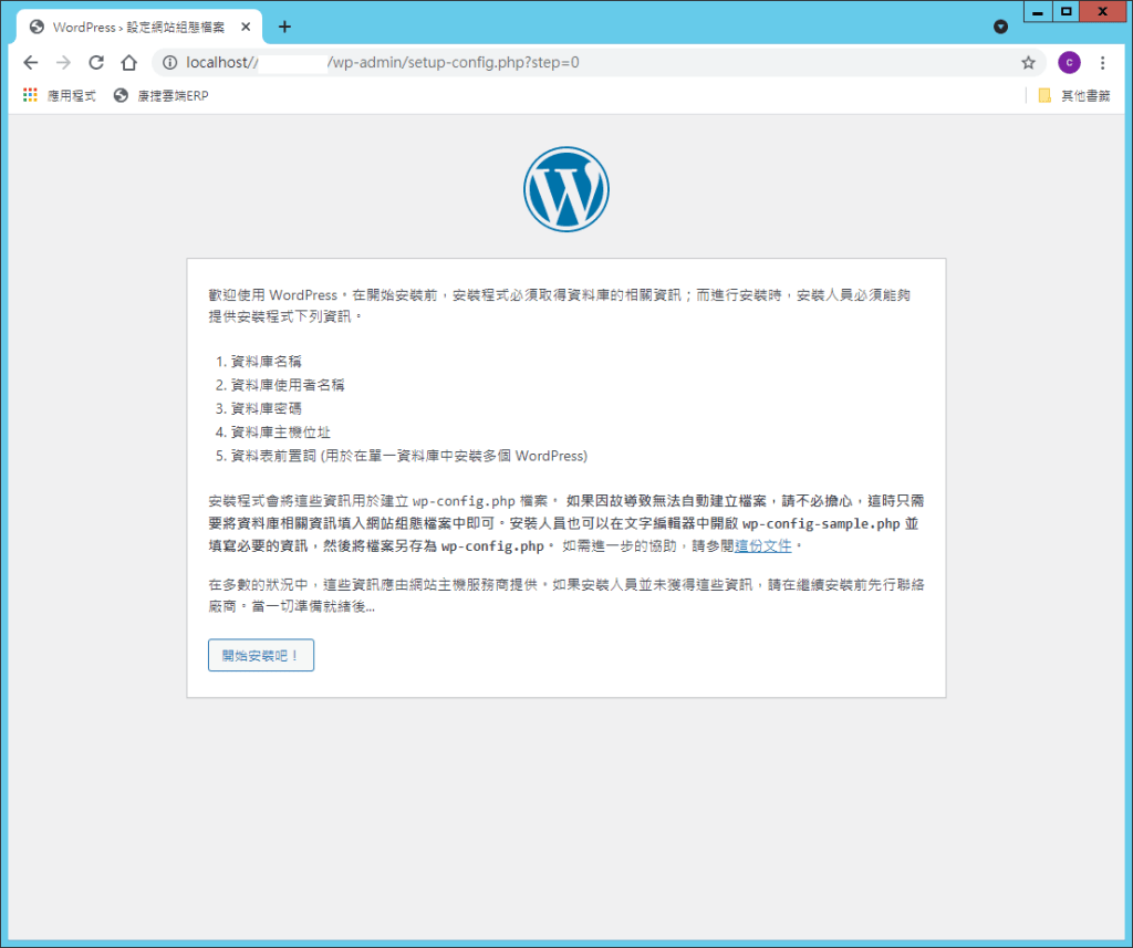第六步 在瀏覽器輸入http://localhost/photo/wp-admin/setup-config.php,進入安裝畫面。